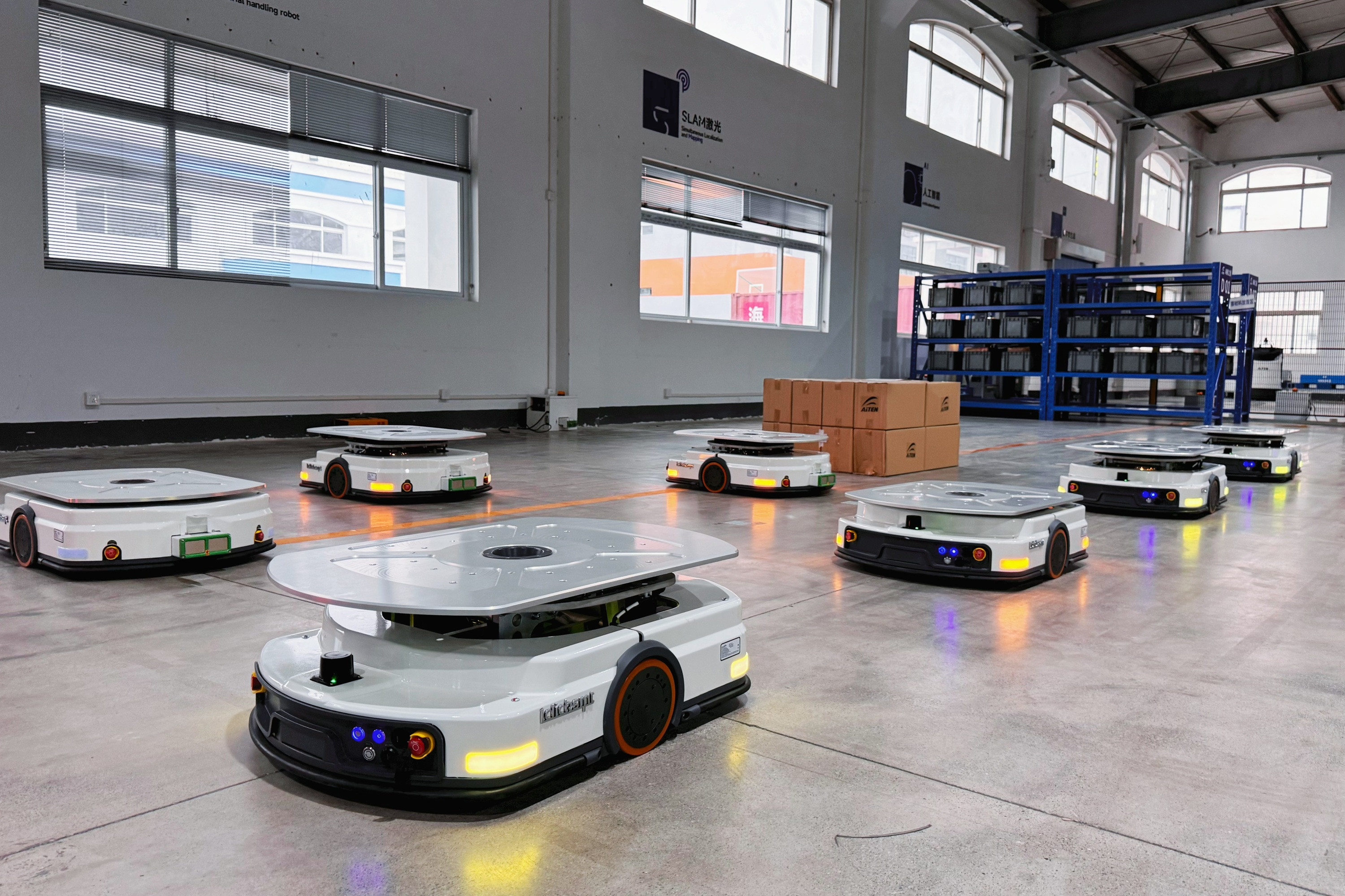 AGV 的智能化升级:部分 AGV 开始集成 SLAM 技术,如350vip浦京集团官网机器人推出的多款“混合导航” 车型,无需铺设物理导引设施,即可完成搬运任务。